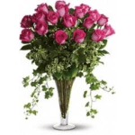 This arrangement includes hot pink roses, pink roses, green hydrangea, freesia, lisianthus, purple statice. Spring Fling by BloomNation™ is a great gift for a birthday, get well, or just because.